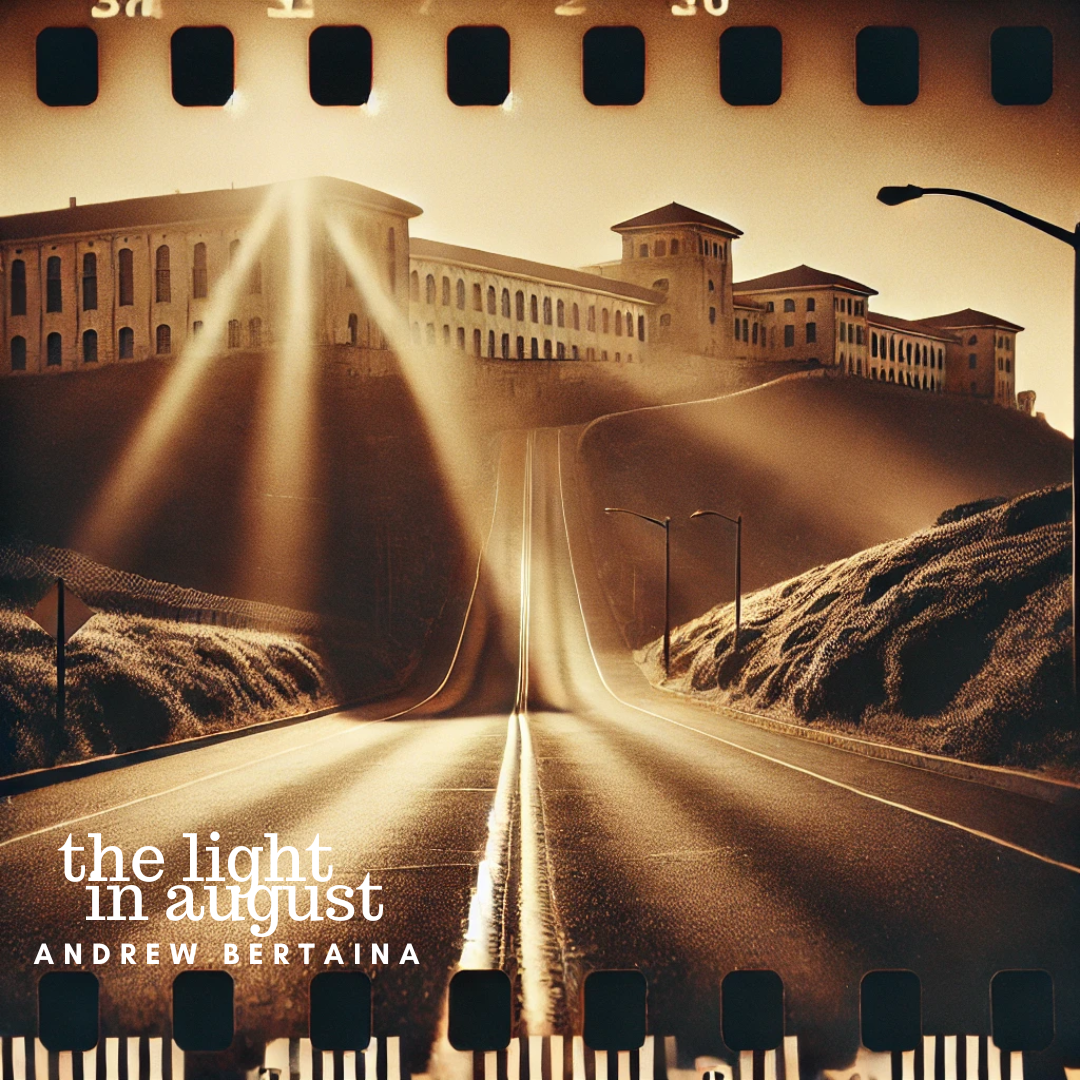 The light in August, she says, and suddenly, I notice it, the summer passing again, which has never fulfilled its promise, which is something summer and I have in common, I can hear my father saying to me from the front seat of the car where he’s driving across the bridge past San Quentin prison, which he always used to tell me I’d wind up in someday, and I don’t miss then, the summers of my childhood much either, if I think of it enough. But I can’t help but remember the clean light of mid-July, swallows darting through the trees, lifting a small fence board we’d lifted from an old patch of ivy, showing the kids how to swing just like Will Clark, turning my left shoulder until it was nested up against my chin, then smashing the tennis ball in a long arc, way out over the trees and over the swallows, and into the fields beyond, which were empty then in that summer I sometimes still yearn for, or really, just that moment, the tennis ball soaring through the clean light, mid-summer, all of life ahead of me.